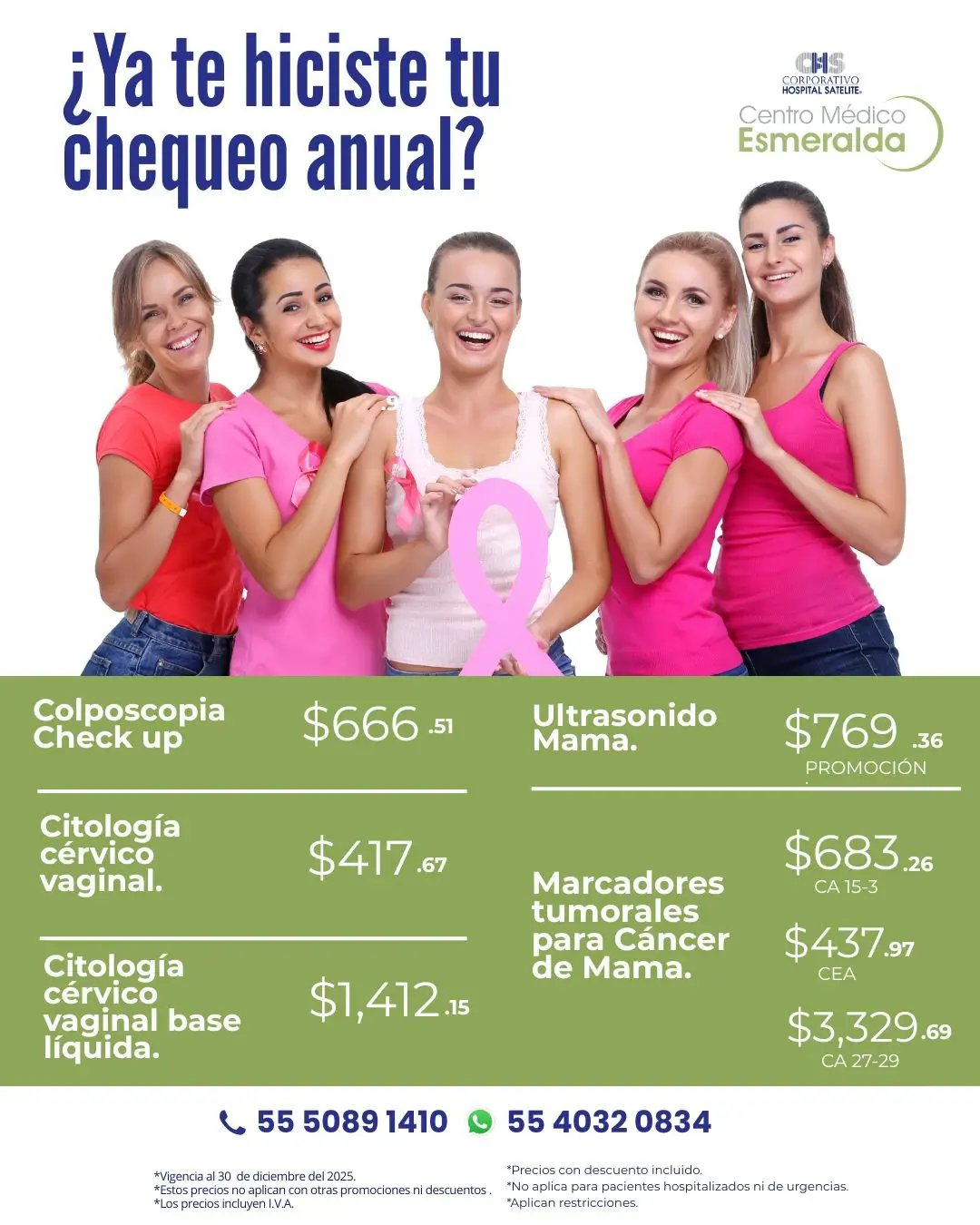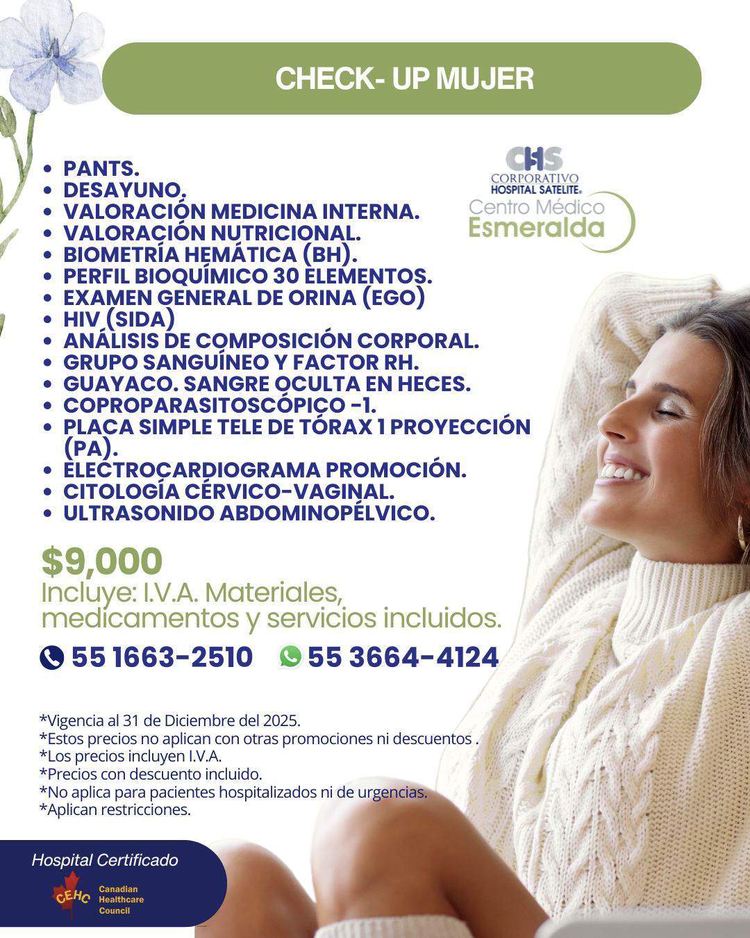 Para el Centro Médico Esmeralda, su salud es lo más importante; por ello, pone a su disposición una serie de promociones con la finalidad de cuidar su economía y que usted reciba un servicio de calidad, personalizado y con el mejor cuerpo médico.